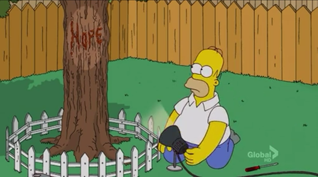 Kriken S World Episode 6 A Tree Grows In Springfield - Homer accidentally breaks his new mypad and becomes depressed so a mysterious message in tree sap appears on bart's tree his treehouse reads hope telling homer not to give up on life.