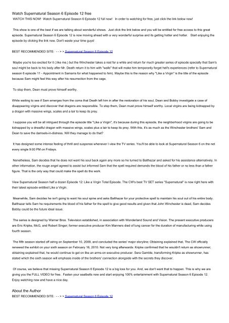 Supernatural Season 6 Episode 1 Free Supernatural Season 6 Episode 1 Free : Best and free online streaming for supernatural tv show.